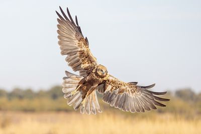 Am Nachmittag stehen erneut Rohrweihen und Bussarde im Fokus – diesmal vor natürlichem Schilfhintergrund, was besonders atmosphärische Bilder ermöglicht.